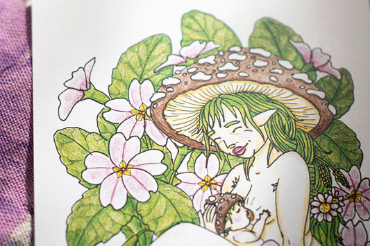 The Mushroom Babes range of body positive breastfeeding mushroom artwork, featuring Babes...
